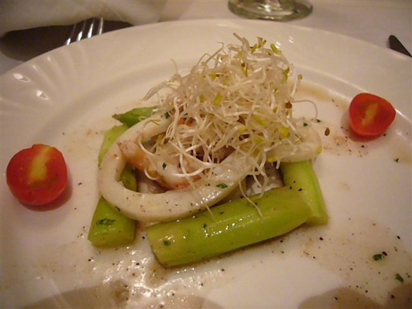 這是海鮮沙拉,有花枝.蘆筍.蝦肉跟